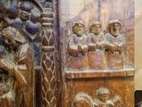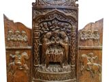Important tryptique en bois sculpté en semi rond de bosse co…