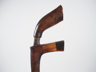 Invendus Indonésie, fin XIXe Poignard Badik fin XIXe-début XXe poigné… Description Son estimation se situe entre 100 et 120 €. Présenté par PRIMARDECO à Toulouse. 4 photos disponibles.