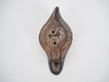 Lampe en terre cuite dans le style antique. 11,5 cm.