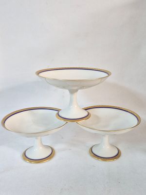 Invendus LIMOGES Trois compotiers en porcelaine blanche à liserets do… Description Son estimation se situe entre 40 et 50 €. Présenté par OLYMPE ENCHERES à Argenteuil. 3 photos disponibles.
