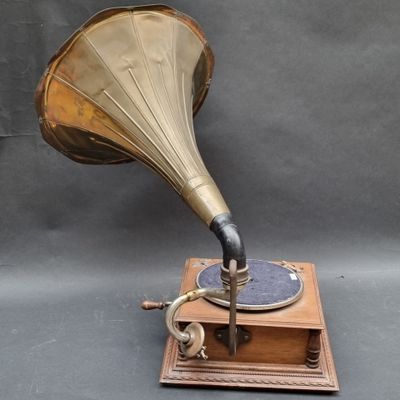 Invendus Lot comprenant : 1 gramophone et son pavillon en laiton, 1 j… Description Son estimation se situe entre 150 et 200 €. Présenté par THOMAS MAISON DE VENTES à Douai. 5 photos disponibles.