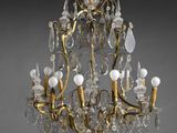 Quel est le prix d'occasion de « Lustre cage en bronze doré à neuf bras de lumières, pampille… » ?