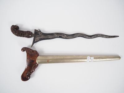 Invendus Malaisie, fin XIXe Poignard dit « kriss » la poignée et le w… Description Son estimation se situe entre 150 et 200 €. Présenté par PRIMARDECO à Toulouse. 6 photos disponibles.