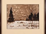 MALET Albert. (1912-1986). « Paysage d’hiver avec sapins et …