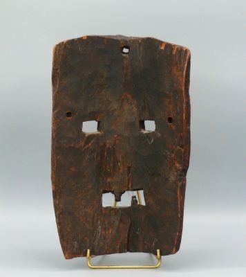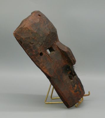 Masque heaume en bois dur et lourd à patine sombre et rehaut…