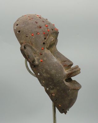 Masque en bois léger à patine sombre crouteuse figurant un v…