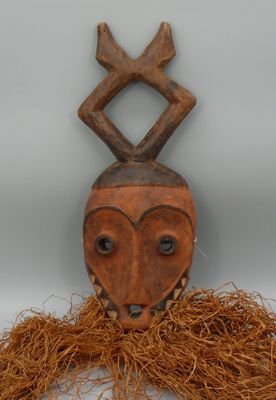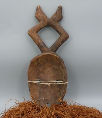 Masque en bois léger rehaussé de polychromie figurant un vis…