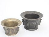 Quel est le prix d'occasion de « 2 mortiers à aillettes et bas reliefs en bronze, Ø 14 cm et … » ?