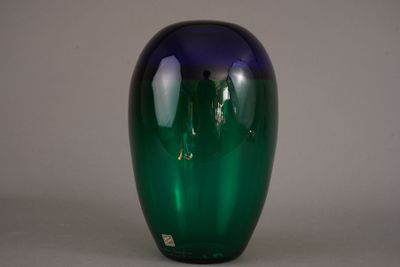 Invendus MURANO. Simone CENEDESE. Vase en verre teinté vert et bleu. Description Son estimation se situe entre 450 et 500 €. Présenté par SADDE COMMISSAIRES-PRISEURS à Dijon. 3 photos disponibles.