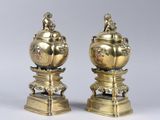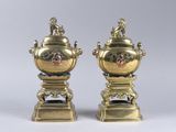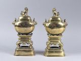 Quel est le prix d'occasion de « Paire de brûle-parfums en bronze patiné doré et rehauts cuiv… » ?