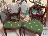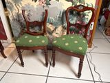 Quel est le prix d'occasion de « PAIRE de chaises en bois sculpté, assises tapissées vertes à… » ?