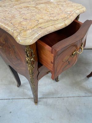 Commode d'époque Louis XV en bois de placage galbée en façad…