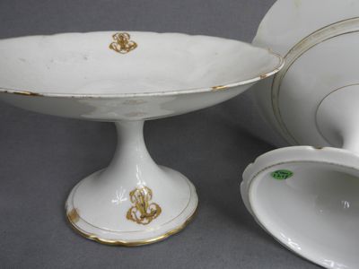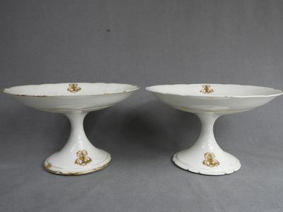 Paire de compotiers en porcelaine blanche à liseré or usé mo…