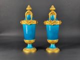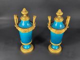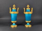 Paire de vases en porcelaine bleue à monture en bronze doré.