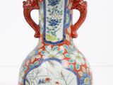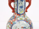 Quel est le prix d'occasion de « Paire de vases en porcelaine polychrome, à long col et ouver… » ?
