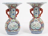 Paire de vases en porcelaine polychrome, à long col et ouver…