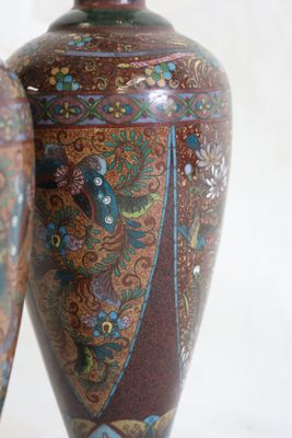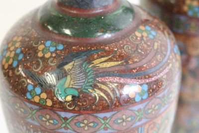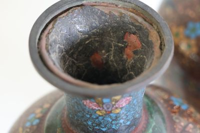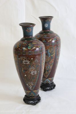 Invendus Paire de vases en émaux cloisonnés polychromes d'oiseux fant… Description Son estimation se situe entre 80 et 120 €. Présenté par Hôtel des Ventes du Tarn à Albi . 6 photos disponibles.