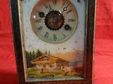 Quel est le prix d'occasion de « Pendule en bois de placage , ornée sous le cadran d un verre… » ?