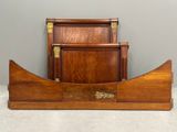 Petit LIT rouleau à chevets asymétriques en acajou et placag…