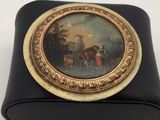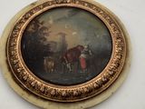 Petite miniature ronde représentant une bergère et son troup…