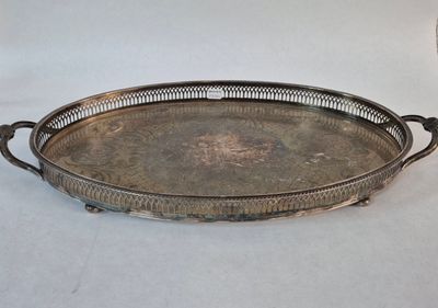 Invendus Plateau de forme ovale en métal argenté reposant sur quatre … Description Son estimation se situe entre 60 et 80 €. Présenté par OLYMPE ENCHERES à Argenteuil. 2 photos disponibles.