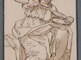 Femme drapée, assise, le b…