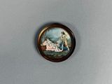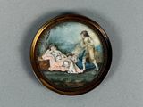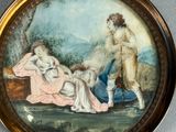 Scène galante, miniature peinte dans un cadre rond en métal.