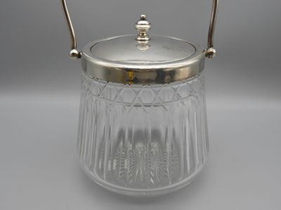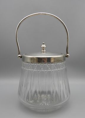 Seau à biscuits & glaçons en cristal, monture en métal argen…