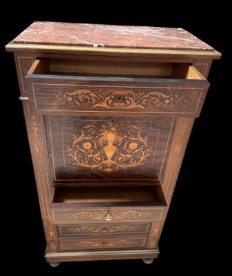 Invendus Secrétaire à abattant de style restauration ouvrant à 5 tiro… Description Son estimation se situe entre 50 et 100 €. Présenté par OVV ROANNE ENCHERES à Roanne. 6 photos disponibles.