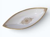 SEVRES Coupe de forme navette en porcelaine à décor or