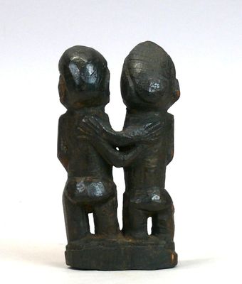 Statuette en bois dur et lourd à patine sombre au style vigo…