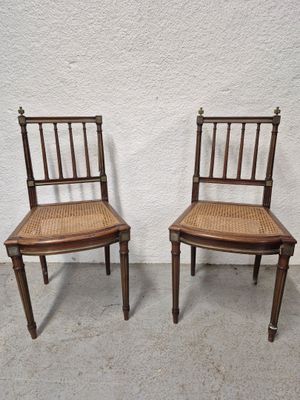 Invendus Suite de quatre chaises de style anglais en acajou reposant … Description Son estimation se situe entre 80 et 100 €. Présenté par OLYMPE ENCHERES à Argenteuil. 4 photos disponibles.