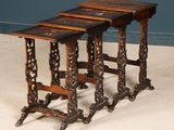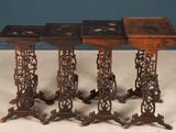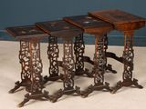Suite de quatre tables gigognes en bois exotique patiné, pla…