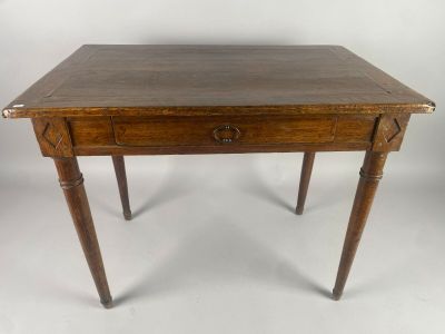 Invendus Table à écrire en chêne ouvrant à un tiroir en ceinture et r… Description Son estimation se situe entre 15 et 30 €. Présenté par OVV ROANNE ENCHERES à Roanne. 2 photos disponibles.