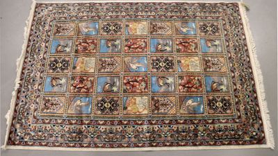 Invendus Trois tapis en laine et soie à décor réciroquement d'animaux… Description Son estimation se situe entre 150 et 250 €. Présenté par ALPES ENCHERES à Chambéry. 7 photos disponibles.