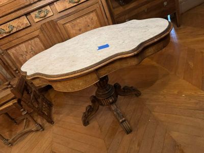 Invendus Un guéridon quadripode à plateau violonné ouvrant par deux p… Description Son estimation se situe entre 30 et 50 €. Présenté par OVV ROANNE ENCHERES à Roanne. 4 photos disponibles.