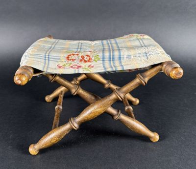 Invendus Un petit tabouret en x, dit ployant, et son coussin assorti Description Son estimation se situe entre 20 et 30 €. Présenté par OVV ROANNE ENCHERES à Roanne. 11 photos disponibles.