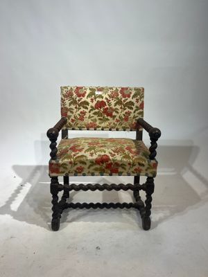 Invendus Une chaise à bras en bois tourné, elle pose sur quatre pieds… Description Son estimation se situe entre 150 et 200 €. Présenté par MERCIER ART à Lille. 2 photos disponibles.