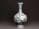 Vase à long col en porcelaine à décor de branches et feuilla…