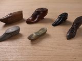 Collection de six tabatières en bois et deux en métal en forme de soul