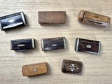 Collection de huit tabatières rectangulaires en bois, la plupart marqu